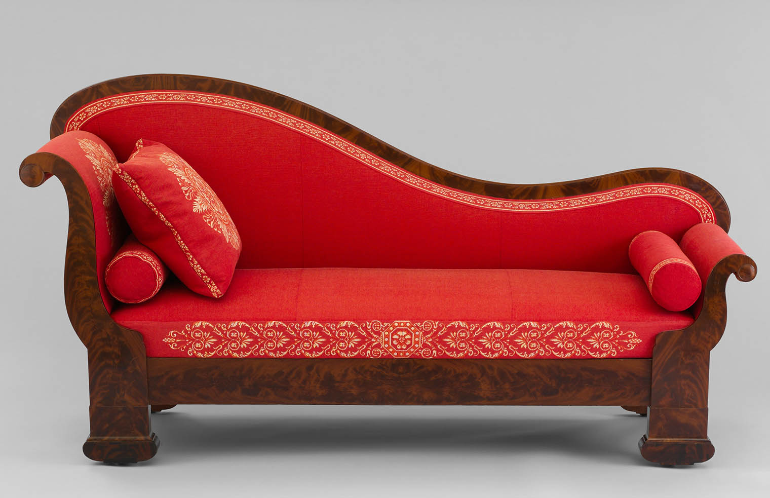 Attributed to the Workshop of Duncan Phyfe (American, born Scotland 1770–1854) or D. Phyfe & Sons (1837–40). Couch. New York, ca. 1837. Mahogany, pine ash, modern upholstery. The Metropolitan Museum of Art, New York, Purchase, L. E. Katzenbach Fund Gift, 1966 (66.221.1)