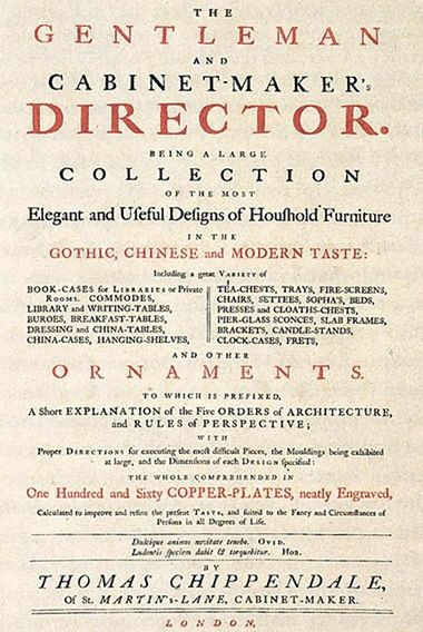 In 1754 the London cabinetmaker and designer Thomas Chippendale published the first edition of The Gentleman and Cabinet-Maker's Director, containing 160 engraved plates. The third edition of 1762 included a total of two hundred plates, of which 106 were new. To this day, English and American Rococo furniture is popularly called "Chippendale."