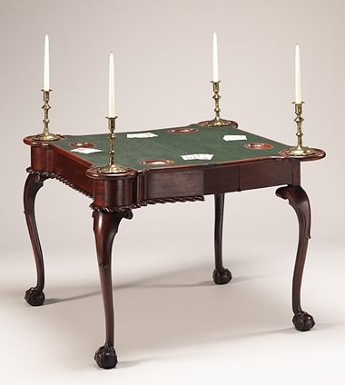 Image: Card table, ca. 1765. New York. Mahogany, mahogany veneer, birch, and tulip poplar. The Metropolitan Museum of Art, New York, Gift of James De Lancey Verplanck and John Bayard Rodgers Verplanck, 1939 (39.184.12)