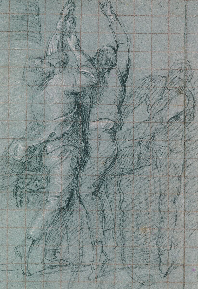 - Title: Study for "The Surrender of the Dutch Admiral De Winter to Admiral Duncan, October 11, 1797": Three Figures Raising the Colors