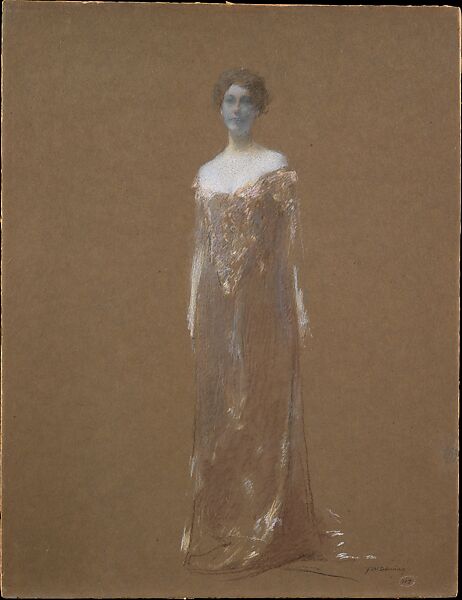 Like many of his contemporaries, Dewing often depicted idealized women, but he invented the refined feminine type depicted in this drawing. In 1902, critic Sadakichi Hartmann wrote that Dewing aimed "to represent beautiful ladies, mostly mature women of thirty … [who] seem to possess large fortunes and no inclination for any professional work. …They all have a dream-like tendency, and though absolutely modern, are something quite different from what we generally understand by modern women."