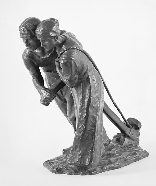 As a sculptor of genre subjects, Haag drew upon his experiences in both Europe and the United States. In a "New York Times" interview (July 1, 1906), he gave the following explanation of this work: "Here is another theme I take from my life and put in bronze…It is typical of my country and the toilers where I am born. It is a man and woman, two peasants of Sweden, who pull together the old-fashioned plow of wood…. I call it 'Accord,' because so I think the sexes come nearest together in the peasant class, in their daily work at the plow, in the field." Haag modeled this statuette in 1905, possibly earlier, and included it in an exhibition of his work focusing on labor themes in early 1906. Social activist and fellow immigrant John Spargo, an early admirer of Haag’s sculpture and author of one of the first articles on him, was instrumental in presenting "Accord" to the Metropolitan Museum.
