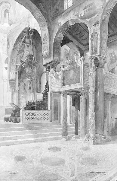Built in the twelfth century, the Capella Palatina was the royal chapel of the Norman kings of Sicily. The chapel, located in Palermo’s Palazzo Reale, has long been a popular tourist destination. A guidebook from Levi’s time celebrated it as "one of the finest works of art of its kind in Italy." As a trained architect, Levi would have been interested in the chapel’s distinctive blending of Romanesque, Saracenic, and Greek influences, particularly in the spectacular Byzantine mosaics that cover the walls and domed ceilings.