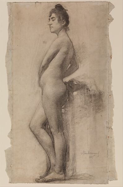 MacMonnies executed this study of a female nude in profile when he was an art student in Europe, perhaps at the Royal Academy in Munich, where his curriculum centered on life drawing. Sketching from a nude model fostered not only an understanding of anatomy, but also the concepts of volume, perspective, and shading that would prove critical to MacMonnies’s later work in figurative sculpture and painting.