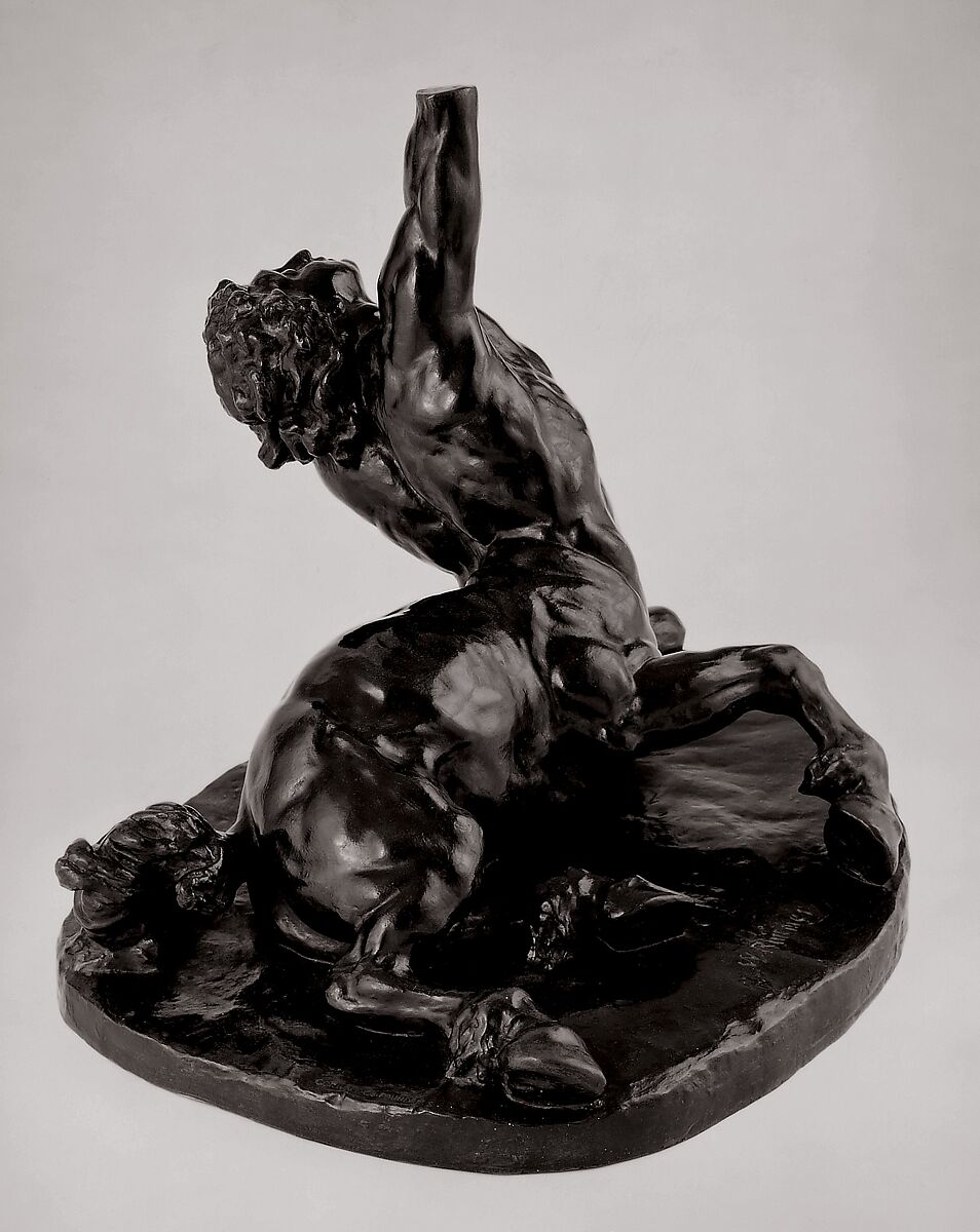 The mythical centaur, with the head and torso of a man and lower body of a horse, represented Rimmer’s recurrent fascination with dueling forces of the spiritual and the physical, the mortal and the immortal, the animal and the human. Here, a centaur who has collapsed futilely attempts to rise. The truncated, upraised arms express the pathos of the dying creature’s plight. Rimmer modeled the sculpture while he was teaching at the Cooper Union for the Advancement of Science and Art in New York and left no commentary on its enigmatic meaning. However, among the proposed interpretations is a connection to the moral tales of poet and theologian Edward Young, in which a centaur confronts his death after a lifetime of debauchery. Facing God’s judgement, he desperately seeks salvation, possibly referring to Rimmer's own moral tumult and lifelong struggles with mental illness.