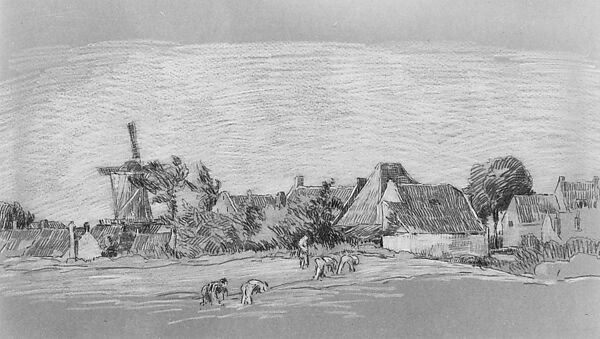 - Title: View of a Village with a Windmill