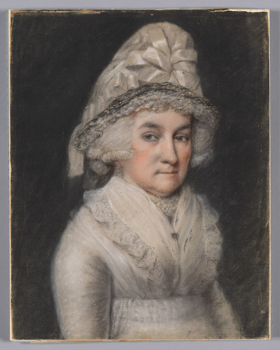 An English-born artist, Sharples established a career in America by asking national figures to sit for profile portraits in pastel. Only occasionally did he produce “full-face” images, as in the frank depiction of Abigail Smith Adams made one year before the presidential election of John Adams. The painting of the future First Lady—often referred to as “Mrs. President” due to her political engagement—reveals her famous shrewdness. An early advocate for women’s rights, she advised her spouse during the drafting of the Declaration of Independence to “remember the ladies . . . do not put such unlimited power into the hands of the husbands.”