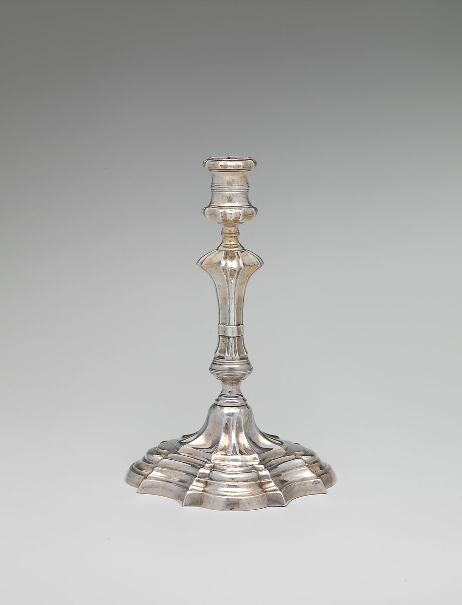 This candlestick is said to have come from the vicinity of Newburyport, Massachusetts. The quality and color of the silver, however, indicate the possibility of a South American origin.