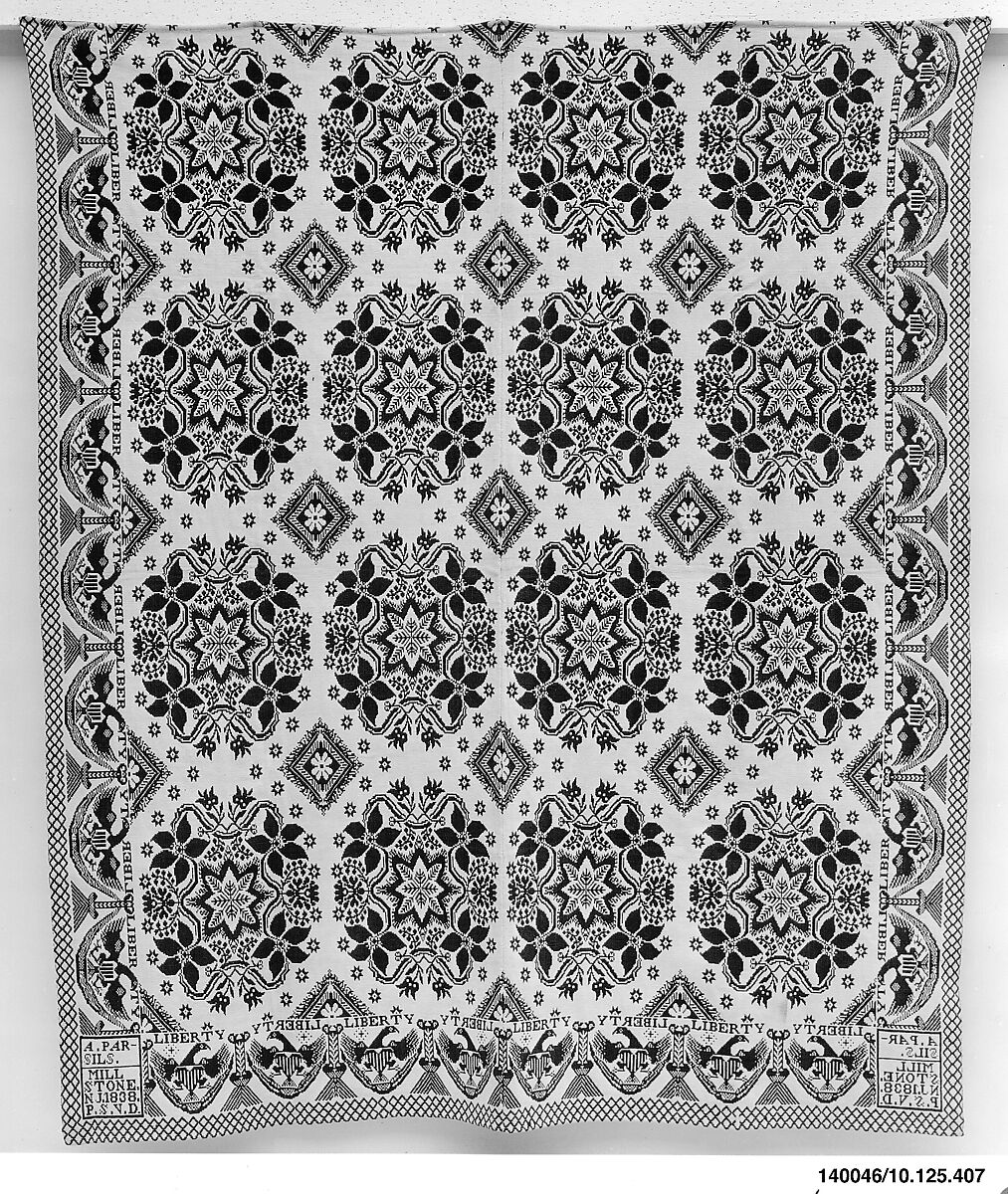 - Title: Coverlet, Lilies of France pattern with Eagle and Liberty borders