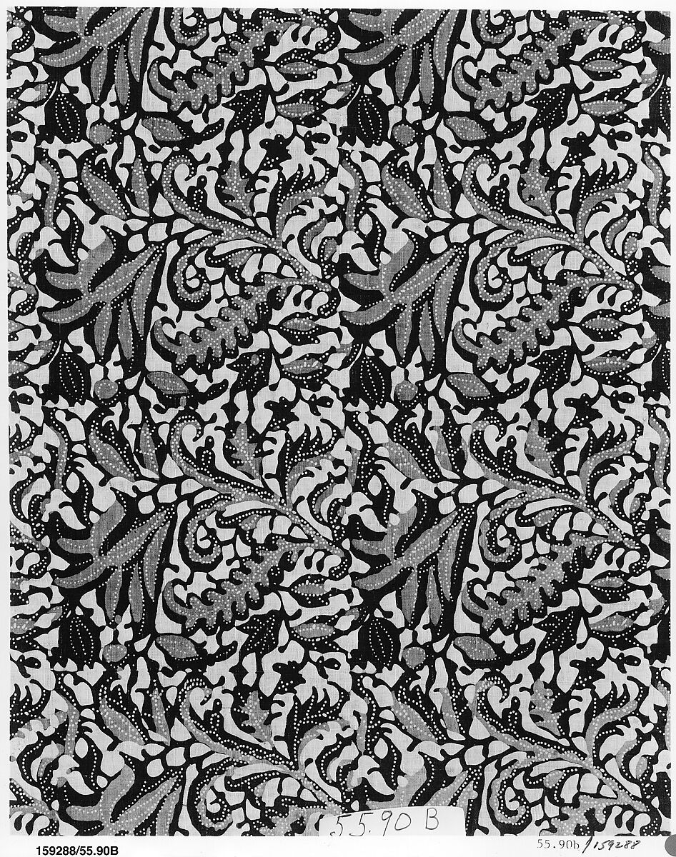 - Medium: Cotton, painted and block-printed resist, dyed