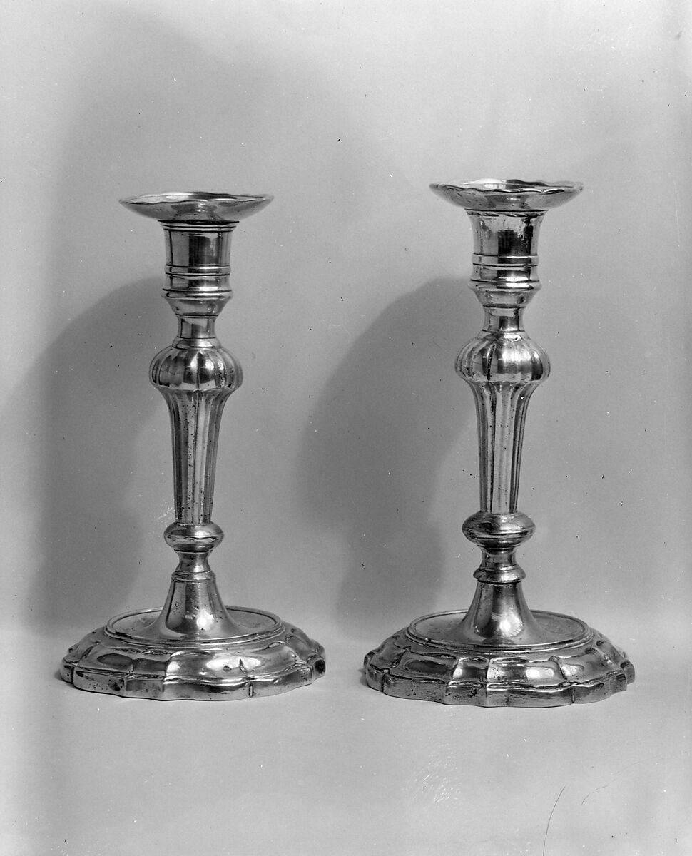 Unlike most eighteenth-century candlesticks, which were made from two casts, this one was cast in four pieces: base, shaft, socket, and bobeche.