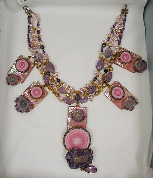 - Medium: amethyst, shell, pearl, gold-plated silver