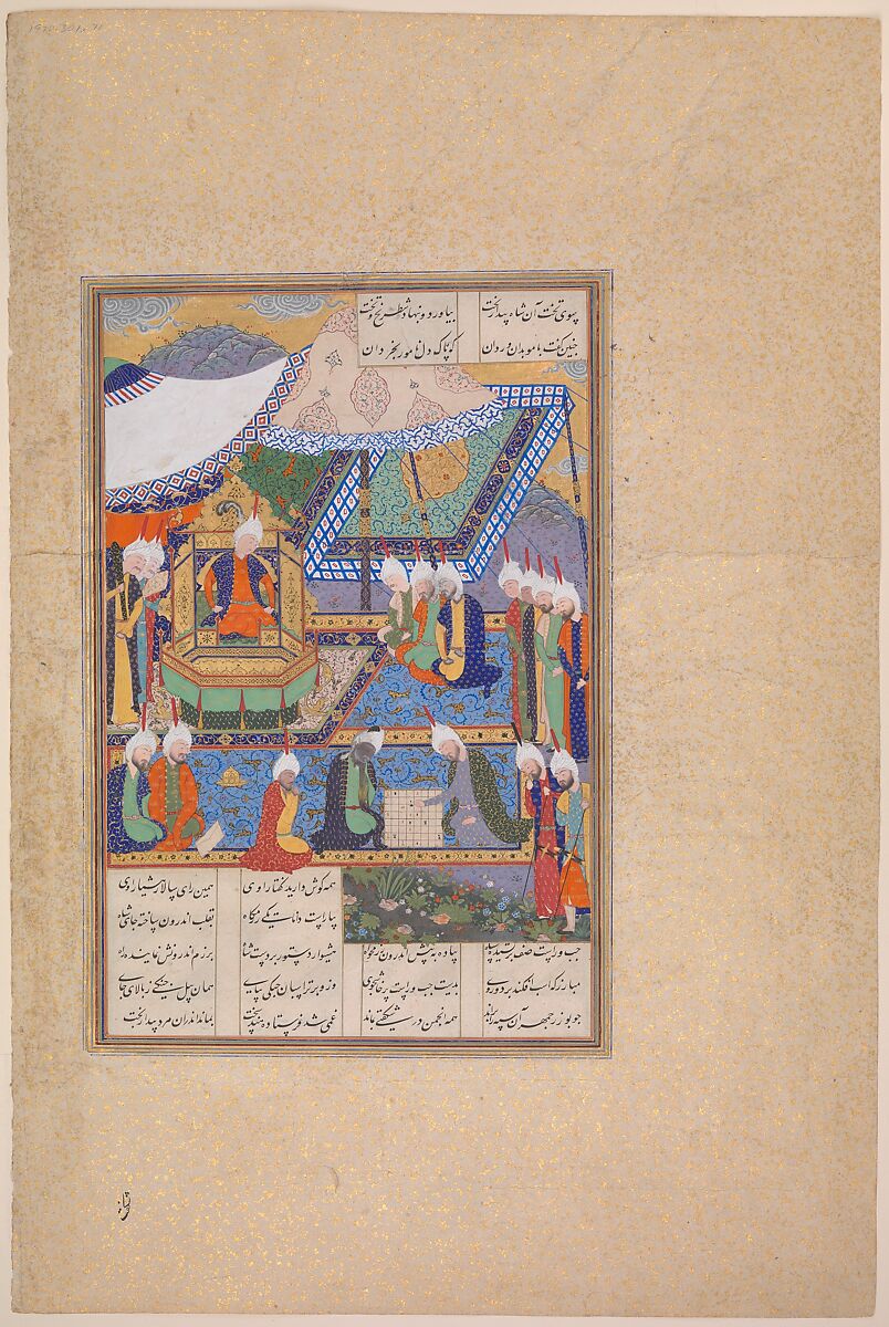 - Title: "Buzurjmihr Masters the Hindu Game of Chess", Folio 639v from the Shahnama (Book of Kings) of Shah Tahmasp