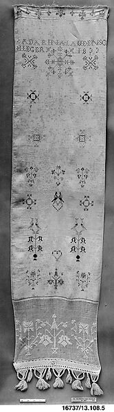 - Medium: Linen embroidered with silk (?)