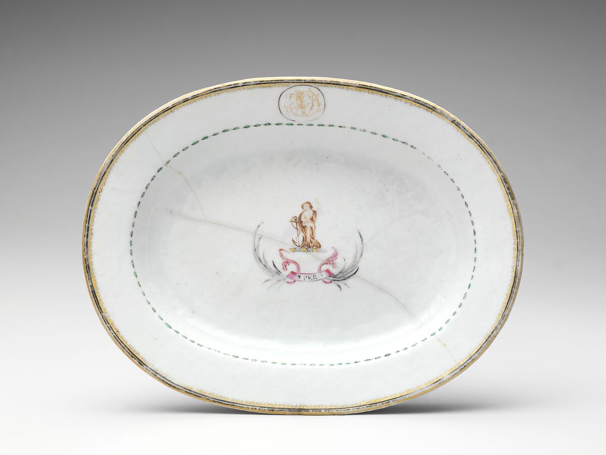 In 1786 the Salem, Massachusetts, merchant Elias Hasket Derby financed the voyage of the Grand Turk, one of the first to follow that of the Empress of China. He ordered a 272-piece dinner service for himself, possibly including this tureen, which bears his crest.