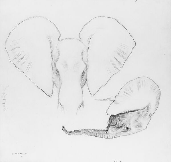 - Title: Head of African Elephants, Frontal and Profile View