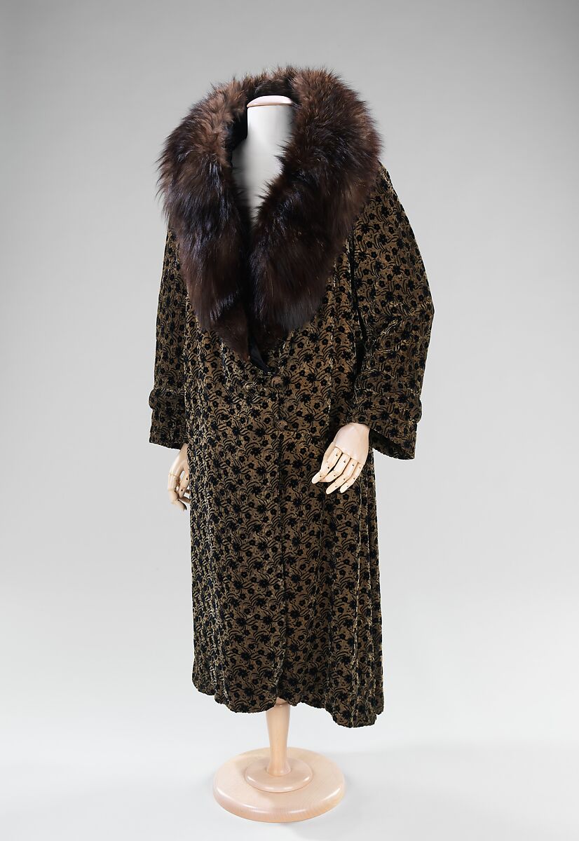 The combination of cut and voided velvet, gold lamé and fox fur render this evening coat an exemplar of 1920s-early '30s glamour.