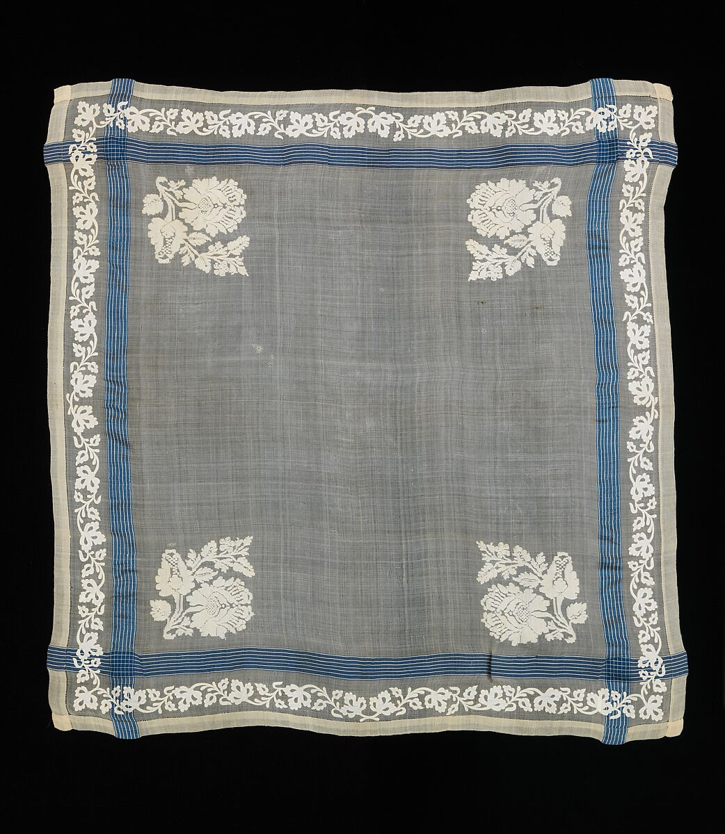 The nearly transparent woven pineapple cloth that comprises this handkerchief contains supplementary woven motifs at the corners that are echoed by the intricately detailed and finely cut muslin appliqué border. The cutwork appliqué seen here is very specific to the Philippines. Known as sombrado technique, it is highly painstaking and difficult work and is done on only the finest pieces of pineapple cloth accessories and garments
