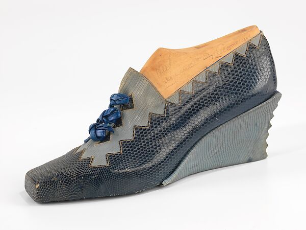 This object comes from a group of over seventy-five shoe prototypes designed in Paris in 1939 by Steven Arpad. Aside from the lines of leather accessories and jewelry he produced under his own name in the 1940s, Arpad seems to have worked mostly anonymously. The prototypes are accompanied by an extensive archive of original sketches which has made it possible to identify uncredited shoe designs for Balenciaga and Delman as Arpad's work. Containing some of the most creative, unique, and unusual examples of footwear design in the collection, the museum's holdings appear to be the only documented body of the work of this extraordinary designer.