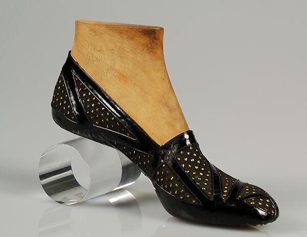 This object comes from a group of over seventy-five shoe prototypes designed in Paris in 1939 by Steven Arpad. Aside from the lines of leather accessories and jewelry he produced under his own name in the 1940s, Arpad seems to have worked mostly anonymously. The prototypes are accompanied by an extensive archive of original sketches which has made it possible to identify uncredited shoe designs for Balenciaga and Delman as Arpad's work. Containing some of the most creative, unique, and unusual examples of footwear design in the collection, the museum's holdings appear to be the only documented body of the work of this extraordinary designer.