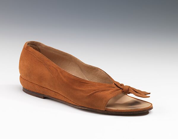 This design immediately stands out in its emulation of a draped scarf. Osgood indicated that Derigú was at the beginning of his career, and while his shoemaking skills were still rather crude, his innovative style showed great promise.