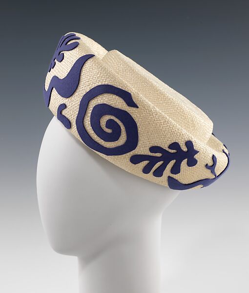 During the 1930s, '40s and the early '50s, when hats were considered required accessories for well-dressed women, Sally Victor was among the foremost American milliners. Creative and very successful for almost 40 years, Victor began her prolific millinery career in 1927. She was one of the original members of the Edward C. Blum Design Laboratory, and often used the Brooklyn Museum's varied collections to draw inspiration for her designs. She was so connected with the Design Lab that she participated in several collaborative exhibitions and the museum often used her designs in publicity materials to exemplify how the Lab could benefit designers by providing inspiration. Her work is characterized by a special quirkiness that could often be traced back to interesting sources such as Native American tribes, the artist Henri Matisse or Japanese armor. She also combined traditional hat-making materials such as felt and silk with new synthetic materials in unique ways. According to her May 16, 1977 obituary in the "New York Times," Victor described her mission simply as "designing pretty hats that make women look prettier."