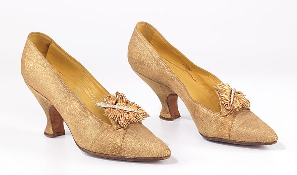 While mass-produced shoes have filled the footwear needs of most of the population for over a century, custom made shoes have continued to be an option for those wanting - and able to afford - special attention to their own preferences in design, materials, and fit. This pair of custom-made tabbed pumps features a rhinestone brooch applied to the specially constructed tab, giving an ultra-luxurious evening look. The curvaceous heel was inspired by 18th century shoes. Mazane was an exclusive custom shop which catered to a wealthy clientele on East 74th Street in New York through the middle half of the 20th century.
