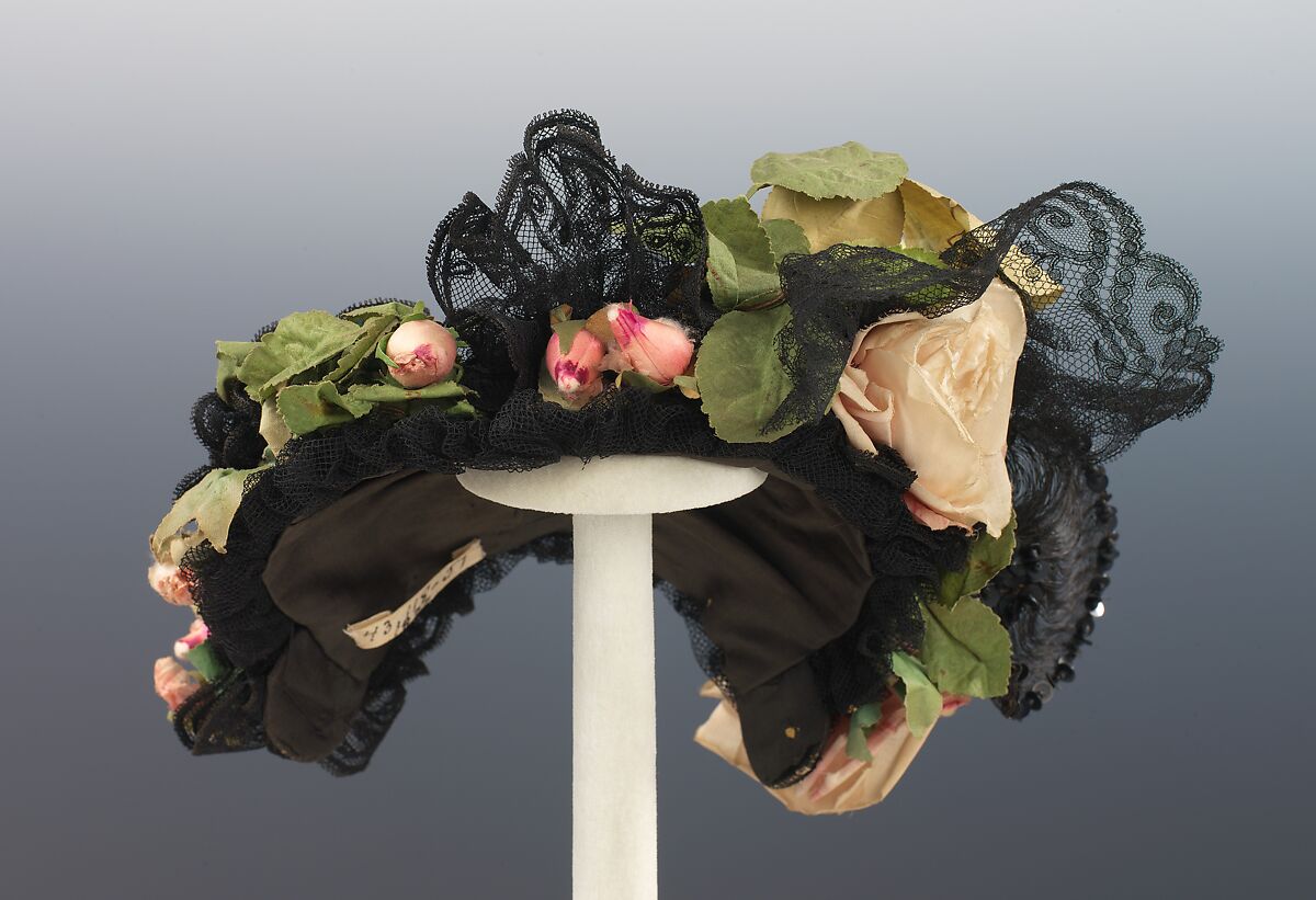 Though produced in New York City, this bonnet achieves the level of quality found in France, where 19th century modistes set the styles immitated throughout the rest of Western Europe and the United States. The quality of materials and expertise in construction mark it as a singular achievement in American design.