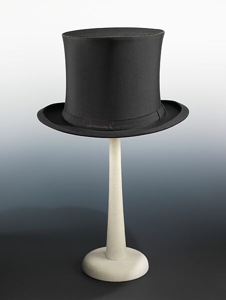 The collapsible opera hat shows the continued use of a practical form dating from the19th century into the 20th century. Built upon a collapsible frame, the hat, when closed, fits discreetly under the gentleman's seat at a theater or opera. The style first appeared during the 1810s, however, it was a French maker, Antoine Gibus, who perfected the design in the 1840s. As a result, a hat of this style is sometimes known as a "gibus." Unlike fixed top hats, opera hats were covered in faille, which would not be crushed as fur or plush would be when the hat was flattened. By the 20th century, the collapsible form proved to be well-suited for the needs of the traveler, as well as the theater or opera patron.