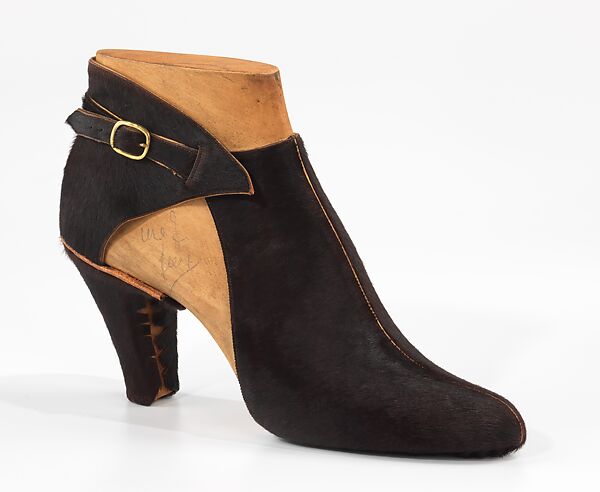 This object comes from a group of over seventy-five shoe prototypes designed in Paris in 1939 by Steven Arpad. Aside from the lines of leather accessories and jewelry he produced under his own name in the 1940s, Arpad seems to have worked mostly anonymously. The prototypes are accompanied by an extensive archive of original sketches which has made it possible to identify uncredited shoe designs for Balenciaga and Delman as Arpad's work. Containing some of the most creative, unique, and unusual examples of footwear design in the collection, the museum's holdings appear to be the only documented body of the work of this extraordinary designer.