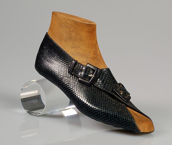 This object comes from a group of over seventy-five shoe prototypes designed in Paris in 1939 by Steven Arpad. Aside from the lines of leather accessories and jewelry he produced under his own name in the 1940s, Arpad seems to have worked mostly anonymously. The prototypes are accompanied by an extensive archive of original sketches which has made it possible to identify uncredited shoe designs for Balenciaga and Delman as Arpad's work. Containing some of the most creative, unique, and unusual examples of footwear design in the collection, the museum's holdings appear to be the only documented body of the work of this extraordinary designer.