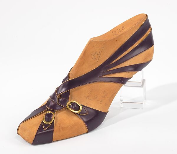 This object comes from a group of over seventy-five shoe prototypes designed in Paris in 1939 by Steven Arpad. Aside from the lines of leather accessories and jewelry he produced under his own name in the 1940s, Arpad seems to have worked mostly anonymously. The prototypes are accompanied by an extensive archive of original sketches which has made it possible to identify uncredited shoe designs for Balenciaga and Delman as Arpad's work. Containing some of the most creative, unique, and unusual examples of footwear design in the collection, the museum's holdings appear to be the only documented body of the work of this extraordinary designer.
