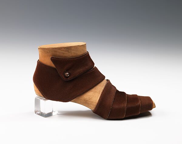 This object comes from a group of over seventy-five shoe prototypes designed in Paris in 1939 by Steven Arpad. Aside from the lines of leather accessories and jewelry he produced under his own name in the 1940s, Arpad seems to have worked mostly anonymously. The prototypes are accompanied by an extensive archive of original sketches which has made it possible to identify uncredited shoe designs for Balenciaga and Delman as Arpad's work. Containing some of the most creative, unique, and unusual examples of footwear design in the collection, the museum's holdings appear to be the only documented body of the work of this extraordinary designer.