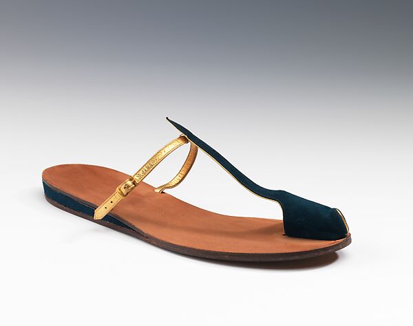 Osgood earmarked this design by Dal Cò as one of the most exciting and radical shoes in her collection. The design of the thong T-strap is unique, ostensibly inspired by Japanese tabi, and true to Osgood's assertions as to the anatomical sensitivity of Italian shoe design, follows the line of the first metatarsal bone.