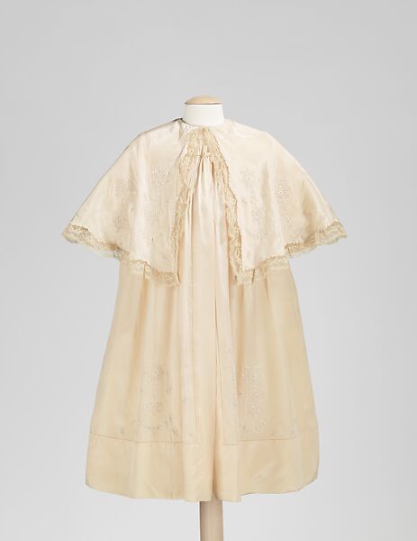 Produced in France, this infant's robe is beautifully made in all respects with very refined details, seen in the hemstitching at the edges and the piping at the neck. Most likely, it was made to show off one's new child and it remains in remarkably good condition, perhaps never being worn. The Liliputian Bazaar at Best & Co. was probably the most exclusive department store department for children's clothing at this time.
