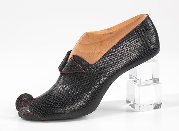 This object comes from a group of over seventy-five shoe prototypes designed in Paris in 1939 by Steven Arpad. Aside from the lines of leather accessories and jewelry he produced under his own name in the 1940s, Arpad seems to have worked mostly anonymously. The prototypes are accompanied by an extensive archive of original sketches which has made it possible to identify uncredited shoe designs for Balenciaga and Delman as Arpad's work. Containing some of the most creative, unique, and unusual examples of footwear design in the collection, the museum's holdings appear to be the only documented body of the work of this extraordinary designer.