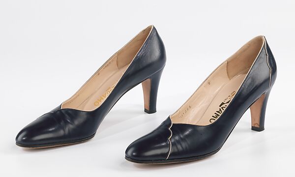 After the death of Salvatore Ferragamo, his wife and children continued the business, with daughter Fiamma in charge of design. While the audacious experimentation of Salvatore is a thing of the past, the company has maintained a reputation for high standards of workmanship and tasteful styling. This pair of pumps illustrates the classic good looks, high quality, refined design, and subtle detailing typifying Ferragamo production from the 1980s.