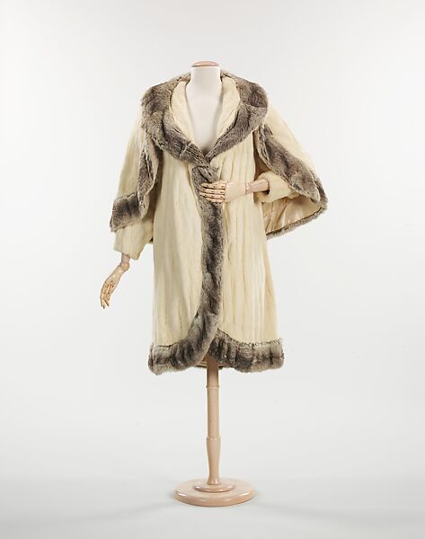 This fur evening coat is made of two of the most luxurious furs available: ermine and chinchilla. Its opulence is made even more apparent with the presence of an attached full-size fur cape.