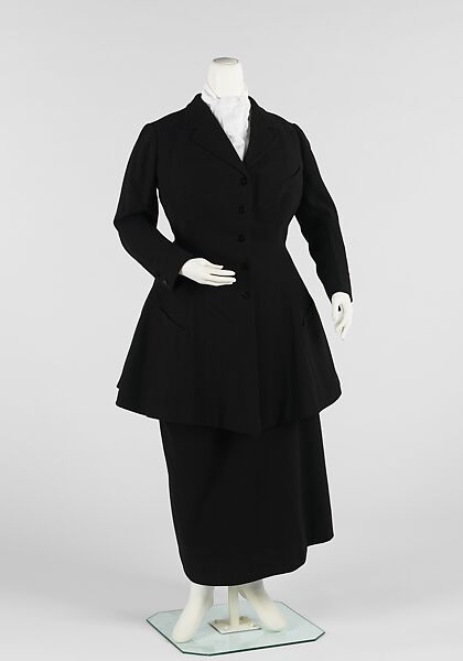 This beautifully made riding habit includes both jodhpurs and a skirt. The riding skirt by this date has become slender and the inclusion of jodhpurs underneath can be seen as a sign of the transition between the modesty of the voluminous 19th century side saddle skirt to the modern riding pants style that would dominate by the 1920s. It marks the end of side saddle riding for women and to the impropriety of jodhpurs and a beginning of a change in thinking about the equality of men and women. The provenance adds extra interest as it was donated by the Mary Flagler Cary Charitable Trust established in 1938. Mary Flagler Cary was the daughter of Annie Louise Lamont (-1939) who was married in 1894 to Harry Harkness Flagler (1879-1952) whose father, Henry Morrison Flager, was one of founders of Standard Oil.