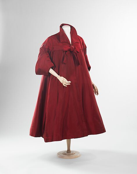 The dramatic silhouette of this evening coat combines references to 1830s sleeve styling and that of the 17th-century cavalier to great effect. The garment belonged to Barbara Cushing Mortimer "Babe" Paley, an American socialite known for her great sense of style.