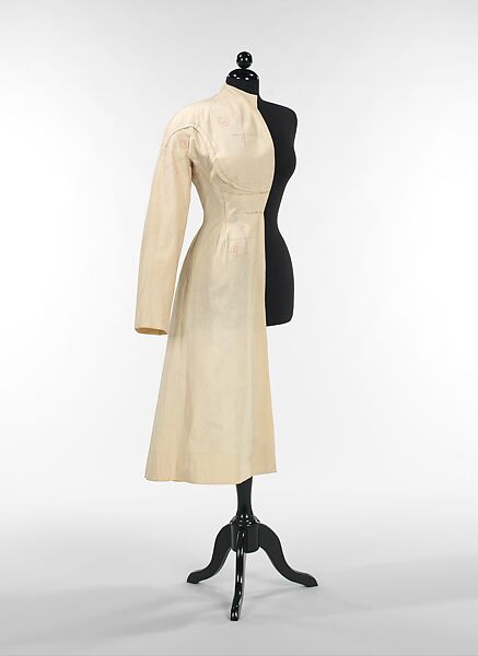The Charles James holdings include an extraordinary collection of sewn muslins and flat patterns that represent James' design process from original concept to the finished garment. At his behest, three of his most devoted clients, Millicent Huttleston Rogers, Mrs. John (Dominique) de Menil, and Mrs. William Randolph (Austine) Hearst, Jr., along with several others, donated this supporting material along with the actual garments. In some cases, the garments are accompanied by materials that represent all of James' design phases-two flat patterns (paper and muslin), and two sewn muslins (half and full).