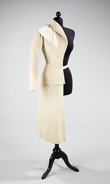 The Charles James holdings include an extraordinary collection of sewn muslins and flat patterns that represent James' design process from original concept to the finished garment. At his behest, three of his most devoted clients, Millicent Huttleston Rogers, Mrs. John (Dominique) de Menil, and Mrs. William Randolph (Austine) Hearst, Jr., along with several others, donated this supporting material along with the actual garments. In some cases, the garments are accompanied by materials that represent all of James' design phases-two flat patterns (paper and muslin), and two sewn muslins (half and full).