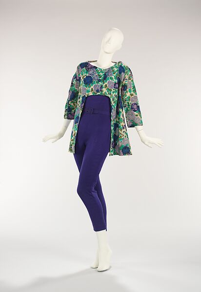 This ensemble evokes the indefatigable hostess of the 1950s. The cutout of the coat front facilitates ease of movement while the jumpsuit allows for comfort in a time when the women's dress was commonly restricting.