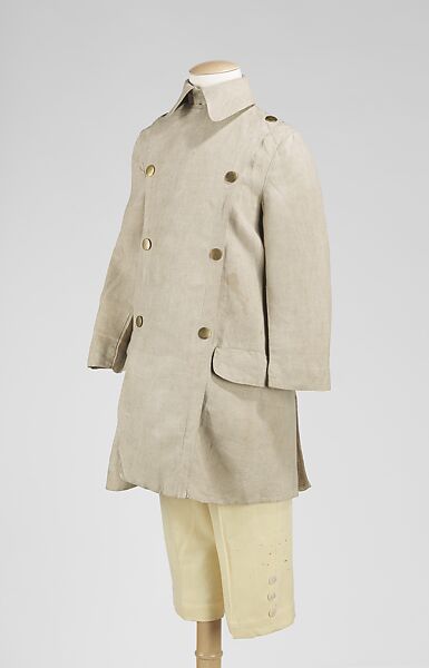 As noted in a letter from the donor, this suit was worn by the father of the donor, Grant Flynn (b. 1904), as a ten-year-old boy to the opening of the Panama Canal in August 1914. Due to the occasion, it is appropriate that the jacket has a label suggesting a water-related sporting activity. Additionally, the lightweight linen jacket and wool pants are appropriate for the summer climate.