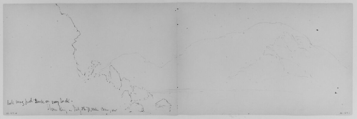 This page is from one of Huntington’s sketchbooks that contains forty-one drawings in graphite, some in a panorama format. The sketches are primarily of scenic locations in New York State including, Cornwall, Walton, and Mohonk subjects. Many of the drawings are dated 1871 and most are inscribed with the site represented.