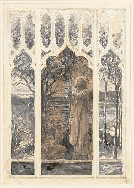 - Medium: Carbon print on lightweight paper, transparent and opaque watercolor in grisaille, and graphite on off-white wove paper
