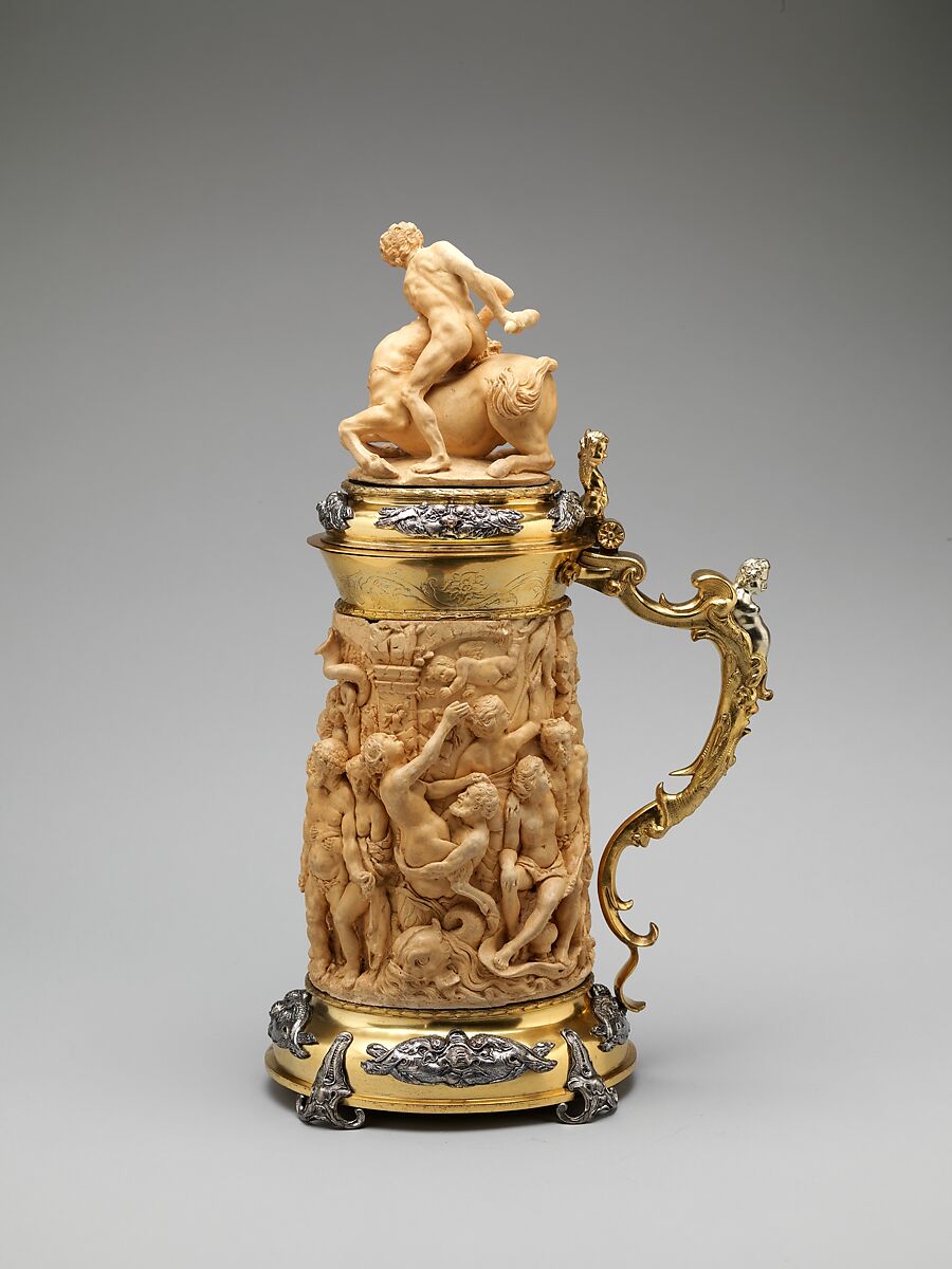 This electrotype is after a late seventeenth-century original (1651), made in Augsburg by Bernhard Straus with silver mounts by Andreas Wickert, at the time of reproduction in the Victoria and Albert Museum, London.