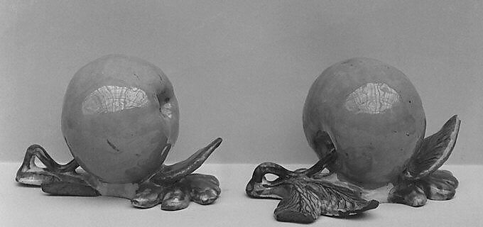 This is one of a set of twelve (see 94.4.38–.49) Delftware polychromed figures in the shapes of fruit including apples, figs, lemons, and pears.