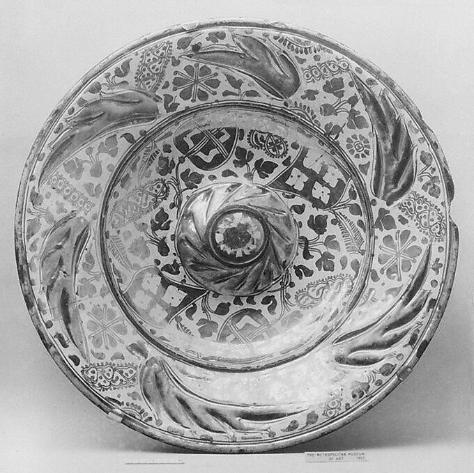 Tin-glazed earthenware, of which lusterware is one type, was developed in the Middle East in the ninth and tenth centuries to imitate the porcelains produced in China. The opaque white glaze concealed the clay body, which could range from pale buff to brick red, allowing for brilliant effects created by painting the white surface with metal oxides that fired to a range of colors. This technique, as well as the use of metallic luster—an iridescent, coppery painted glaze—spread throughout the Muslim world, arriving among the potters of Valencia in the thirteenth century. The so-called Hispano-Moresque lusterware, with its fusion of Islamic and Gothic styles and motifs, often in shaped imitating those of metal vessels, was treasured by the elite in Spain during the fifteenth century and exported to the courts of Europe. The Valencian industry declined in the late sixteenth century, as colorful Italian Renaissance maiolica gained in popularity among the fashionable and as Spanish centers were founded to produce versions of its pictorial forms. Adding to this decline was the expulsion from Valencia in 1609 of all the remaining Moriscos (Muslims converted to Christianity), though Christian potters reestablished the industry shortly thereafter.