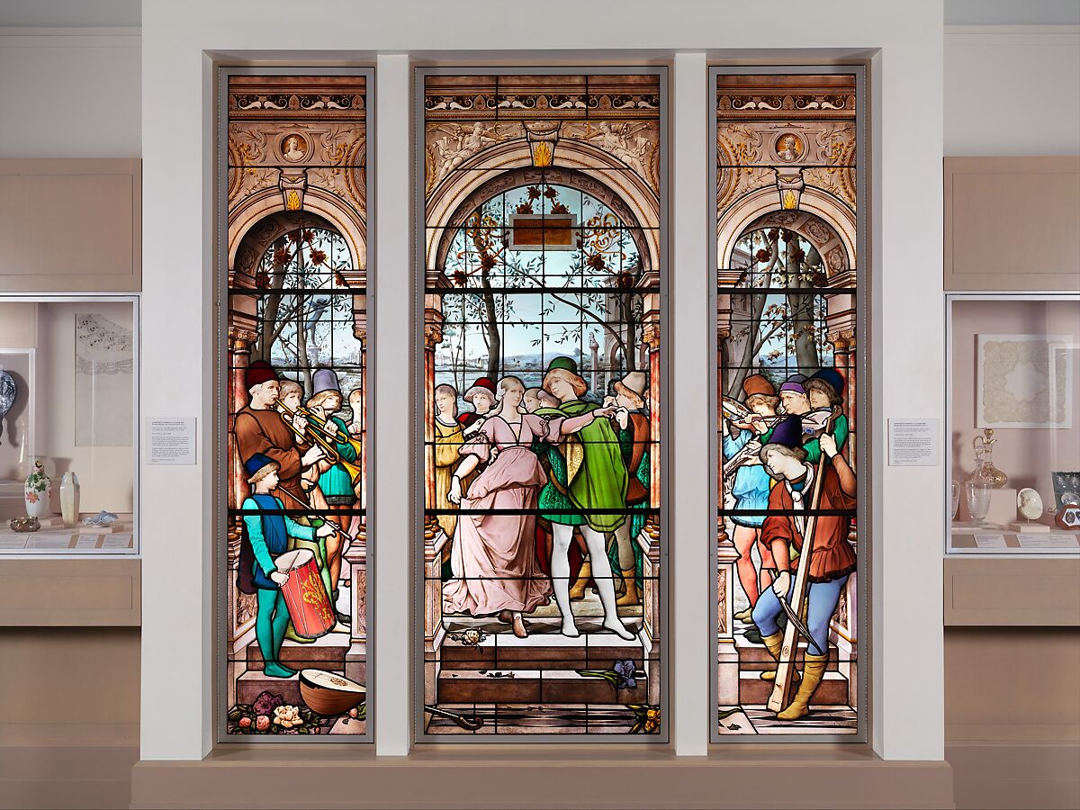 The patron was the widow of Isaac Bell, a prominent New Yorker in the second half of the nineteenth century. In 1906, the panels were removed from a bay window in their apartment in the Knickerbocker Building, on Fifth Avenue at Twenty-eighth Street.